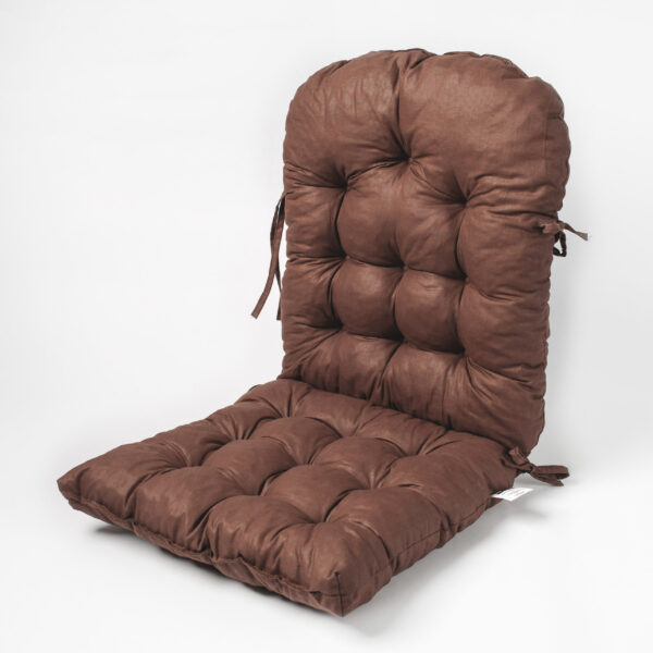 Мека и удобна възглавница за стол с гръб изработен от памучен плат с пълнеж от полиуретанова пяна и силиконов пух. Може да се ползва както във вътрешна среда така и на терасата, градината и др. Размера е подходящ за различни видове, както пластмасови така и за стилни дървени и железни столове.